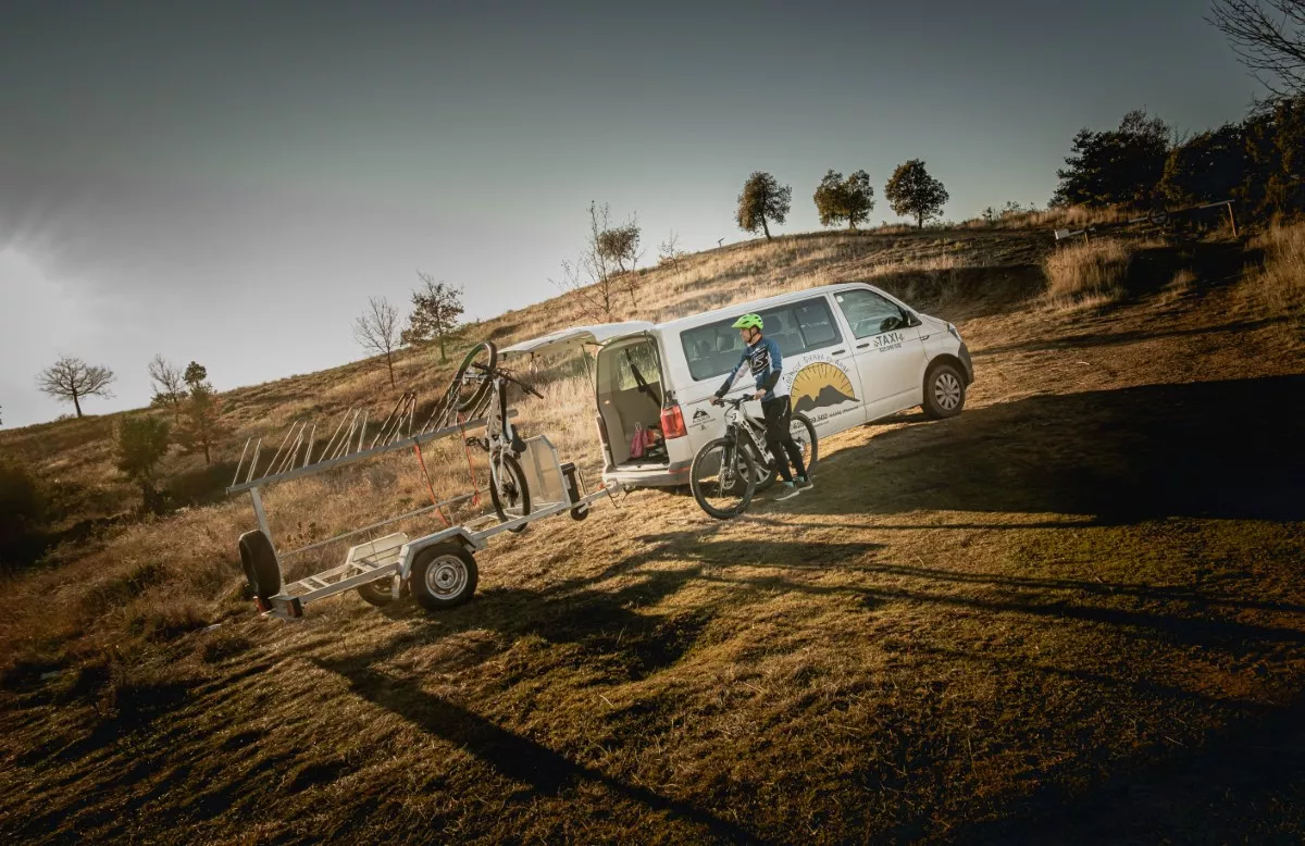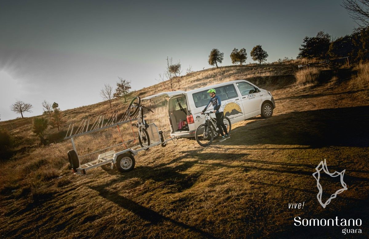 Taxi de 8 plazas 4x4, remolque para 10 bicicletas.