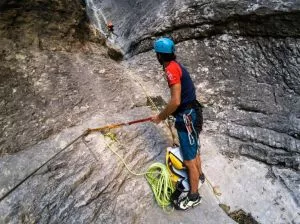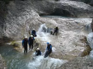 Es handelt sich um einen spielerischen und einfachen Abstieg, geeignet für Fortgeschrittene unter Führung. Die kalkige Schlucht für die Wanderbegeisterten, die sich zum ersten Mal in der Technik des aquatischen Abstiegs versuchen möchten.