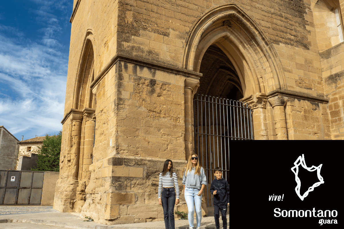 Der Tympanon der Front, ausgestellt mit sechs Archivolten präsentiert einen trinitarischen Crismon, die Mandorla mit dem Pantokrator und den Tetramorfos (Symbole der Evangelisten). Die Turm-Terrasse entspricht bereits den ersten Momenten der Gotik im Somontano.