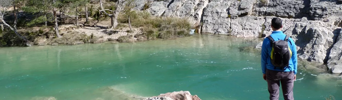 Wir müssen weiter auf dieser Spur gehen bis wir das Schild erreichen, wo der Anfang des Weges angezeigt wird, der zu den Quellen führt. Diesem Weg entlang, werden Sie großzügige Panoramaaussichten der Schlucht genießen können, durch die der Fluss Alcanadre fließt, gegraben zwischen von Sandstein und Konglomerat gebildeten Gebirgsketten. Hier dominiert die Landschaft des Ei von Morrano y der Cabeza de Guara