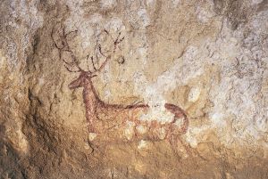 - Inhalt: ein Hirsch, ein kleiner Bock, finger-, falten- und fleckenförmige Gebilde