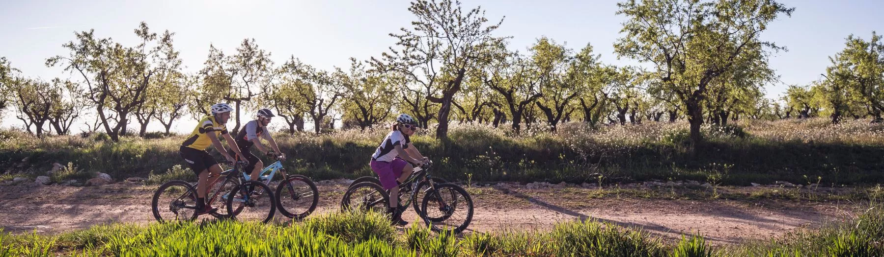 Balced mountain range and ravine, fields of olive and almond trees, views of Guara and the Peonera ravine.