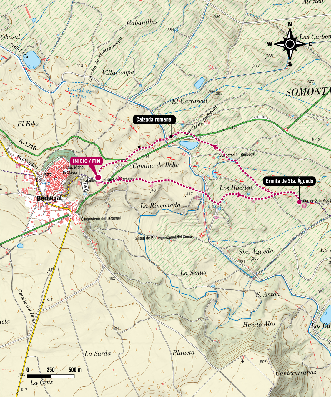 The route starts 800 meters from Berbegal, at the junction with the A-1223 road, and heads toward the Romanesque hermitage of Santa Agueda, a magnificent example of medieval religious architecture that still preserves its original character.