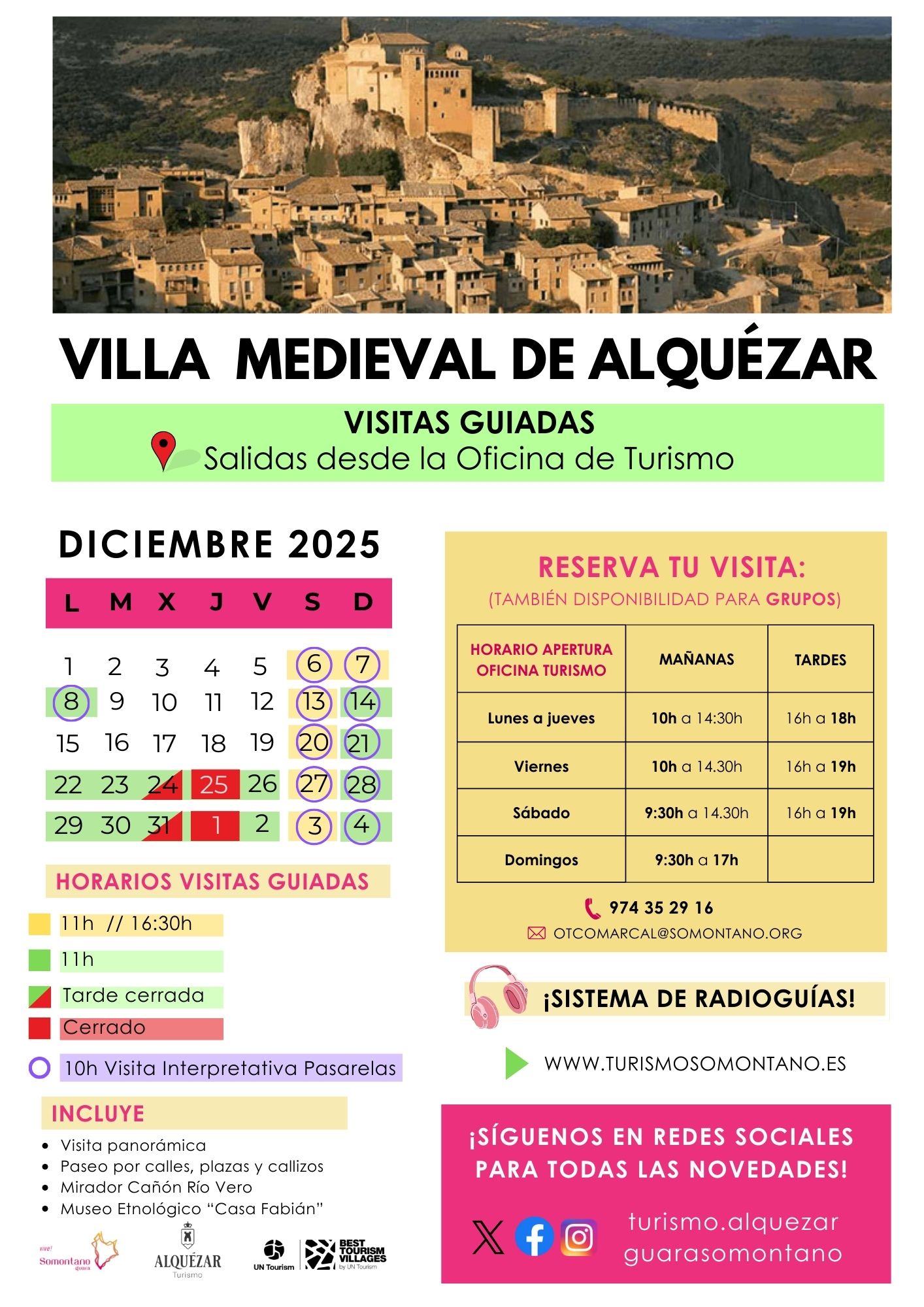 - Se puede realizar la reserva tanto en la propia oficina como por la página web https://turismoalquezar.es/entradas | https://pasarelasdealquezar.com/