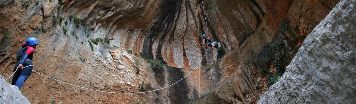 It includes two impressive “mid-air” rappels, each more than 30 metres high. The canyon is dry during most of the year, but can be quite damp. This canyon should only be tackled by those with good experience of abseiling techniques.