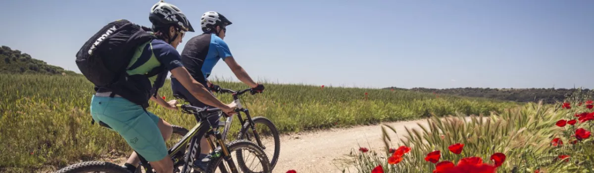 A simple and pleasant cycle route starting from Estadilla and passing through cultivated areas on the slopes of the La Carrodilla mountains. It begins at the sports area at the entrance of the town, where you can visit the Aldahara winery, located a short distance away. A few meters further, also at the town’s entrance, the route passes by the Leo & Niné Wines.