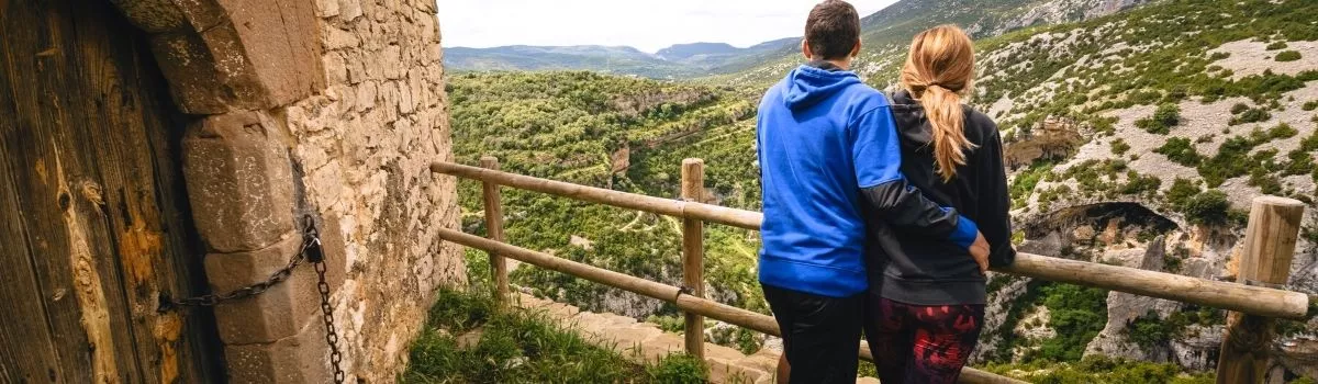 This small chapel is perched on the highest part of a cliff, and boasts exceptional views of the rugged needles and huge rocks of the mysterious Mascún canyon.