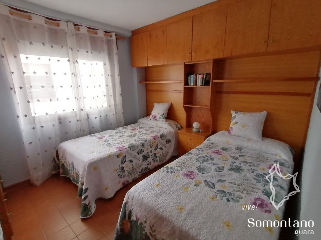 Apartamento para 6 personas en Barbastro. El apartamento consta de una habitación doble con cama de matrimonio, una habitación con dos camas individuales y un salón comedor con sofá cama.