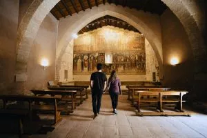 Para introducirnos en el apasionante mundo de la prehistoria del Alto Aragón, nada mejor que iniciar esta ruta en Colungo visitando el Centro de Interpretación del Arte Rupestre. En él encontraremos toda la información necesaria para dirigirnos a los diferentes abrigos con pinturas rupestres existentes en el cañón del río Vero y conoceremos las claves que permiten comprender la evolución de los pueblos primitivos y sus manifestaciones culturales. Tampoco debe faltar un paseo por las estrechas y laberínticas callejuelas que envuelvan la gótica iglesia parroquial, dedicada a Nuestra Señora del Pilar.