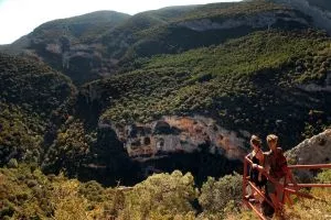 En Colungo tomaremos la carretera A-2205 en dirección a Arcusa. Su serpenteante trazado nos permitirá disfrutar de un paisaje de gran belleza, donde los conglomerados, vestidos de encinas y madroños, son atravesados por profundas gargantas como la de Fornocal.