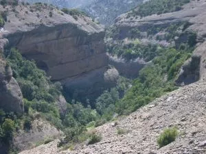 Aproximación: 1 hora. La salida se encuentra se encuentra en el km. 9-10 de la carretera que va de Bierge a Rodellar señalizado como Collado Fondo. Debemos seguir por la pista forestal que sale del mismo collado (al lado de un cubre contenedor de madera) y seguiremos 2,5 km. hasta el Collado de Colmenares (ruina a la derecha). Veremos un sendero señalizado que indica Tranco de las Olas, por donde remontaremos una vez finalizado el descenso. Ya equipados seguiremos a pié por la pista hasta la valla. En una curva cerrada hacia la izquierda sale el sendero bien marcado hacia nuestra derecha que nos llevará al inicio. Localidad más cercana: Las Almunias de Rodellar