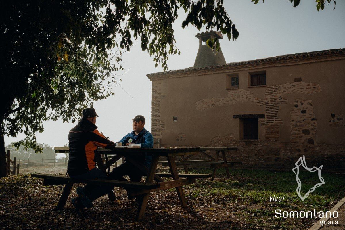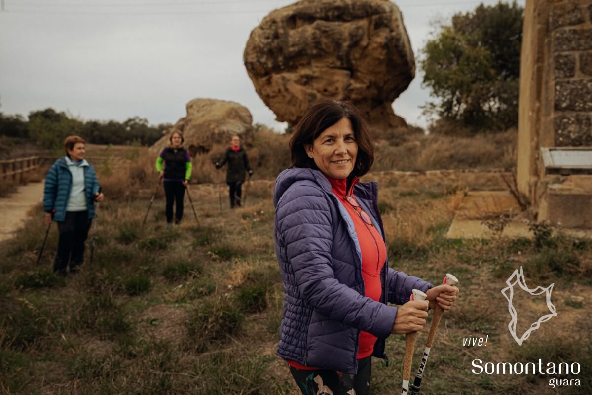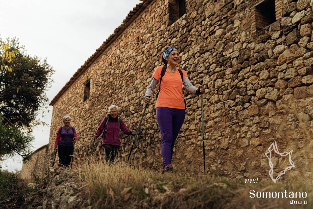 Desde el aparcamiento de las salinas partimos rodeando el complejo de piscinas recreativas y de producción de sal para dirigirnos por una fuerte subida hasta la ermita de Santa Quiteria. Desde allí la ruta desciende por un corto tramo de sendero hasta la pista de la que nos habíamos desviado poco antes, y continúa realizando la vuelta circular del Tozal de Bolero. Al llegar a la Vereda de Abizanda el recorrido desciende rápidamente hasta regresar a las salinas desde donde partimos.