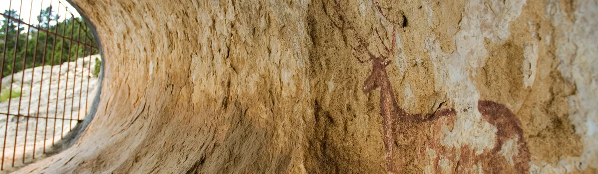 Siguiendo el itinerario señalizado, y tras descender por el lecho de un barranco afluente del río Vero, llegamos al abrigo de Chimiachas. La pequeña oquedad contiene una única figura pintada en rojo. Se trata de un espléndido ciervo de estilo Levantino, cuya antigüedad está comprendida entre el 6.000 y el 4.000 a.C. Aunque sus autores pertenecieron a una sociedad preneolítica de cazadores y recolectores, progresivamente fueron incorporando las novedades traídas por una nueva sociedad de agricultores y ganaderos asentada en el territorio.
