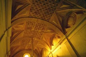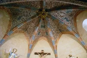 Aunque los elementos formales son góticos, el espacio interior está mucho más próximo a la nueva estética del renacimiento. Nada más entrar, es imposible no fijarse en las seis hermosas columnas, con unos 16 metros de altura, que continúan en arcos adornados con 485 rosas doradas dando la apariencia de un bello cielo estrellado. Para pasar a continuación a admirar el retablo mayor, del que parte del basamento es obra de Damián Forment.
