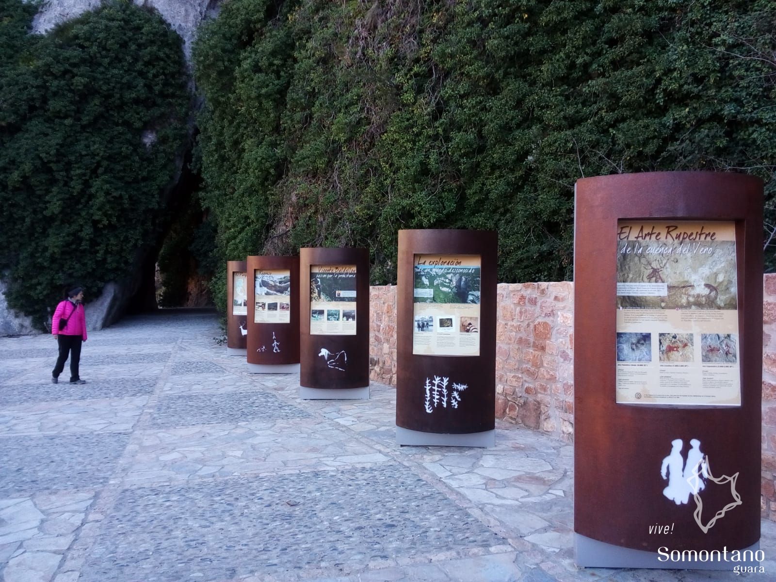 Está equipado con cinco tótems (traducidos al francés y al inglés) que nos guiarán por los secretos del patrimonio prehistórico de Guara Somontano, toda una oportunidad para conocer en familia, algo más sobre la figura y legado de Vicente Baldellou y sobre el arte rupestre del parque cultural, tesoros rupestres del norte del Somontano y sur del Sobrarbe.