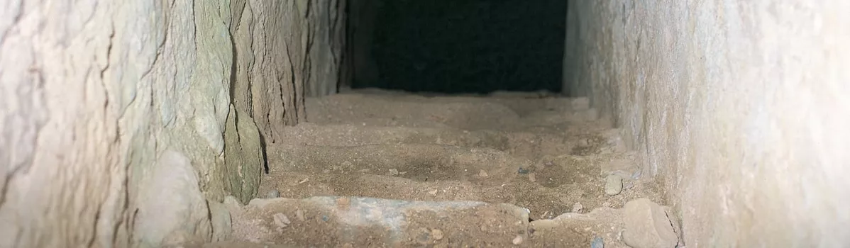 À Adahuesca, la rampe avec des marches est complètement recouverte par un toit incliné parallèle à la rampe. C’est pourquoi la sensation d’étroitesse est de plus en plus forte.