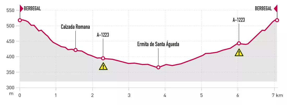 Le parcours proposé commence depuis la partie haute du village pour pouvoir, en plus de profi ter des belles vues, admirer aussi les belles maisons seigneuriales, comme l’actuel Hôtel de Ville, et son imposante église. Après être descendu du village, l’itinéraire se dirige vers l’ermitage roman de Santa Águeda le long de l’ancienne voie romaine Ilerda-Osca, dont il ne reste que quelques sections. Á continuation il pase sur des chemins agricoles en parfait état jusqu’à l’ermitage, entouré d’un curieux environnement avec de gros rochers de grès. Le retour à Berbegal se fait plus directement sur des chemins en bon état.