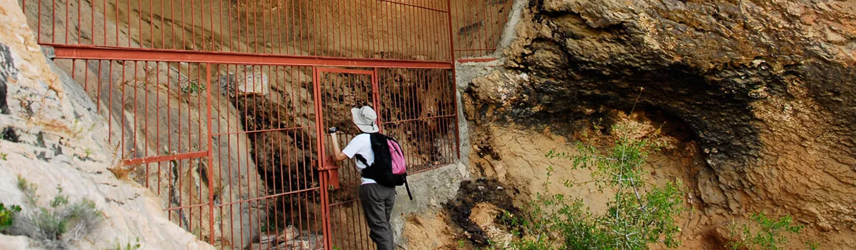 L’entrée de la grotte est située en face du canyon Fuente. Cette énorme brèche semble fracturer la sierra en deux parties d'où l’on peut entrevoir une partie du village d'Alquézar