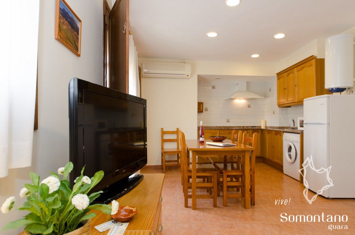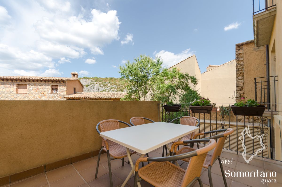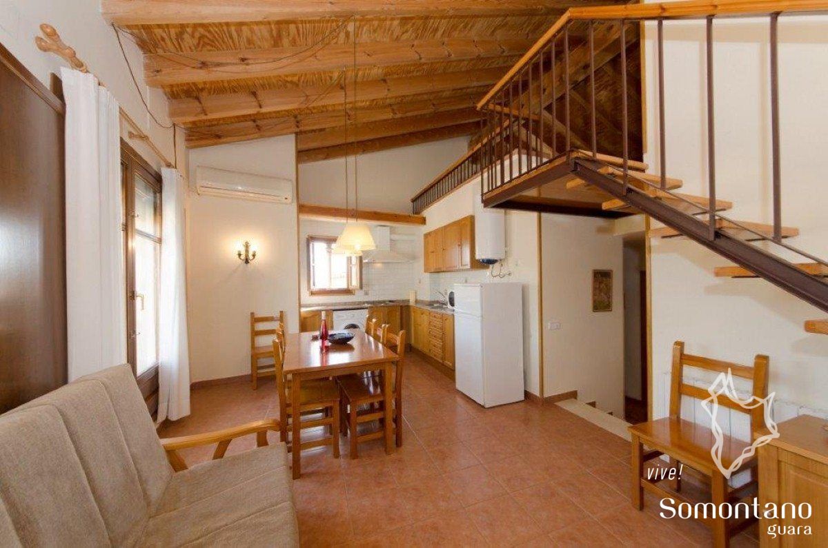 Consta de seis apartamentos de 1, 2 y 3 habitaciones, completamente exteriores. Los apartamentos están totalmente equipados, para que los visitantes disfruten de la máxima comodidad. Wi-fi incluido. Su situación es ideal para unas vacaciones o un fin de semana, en el centro de Alquézar en una calle muy tranquila, a 200 mts. del parking público gratuito.