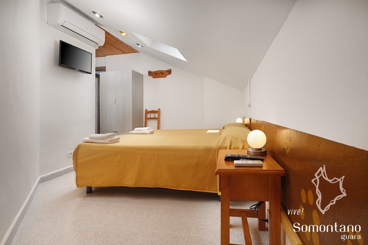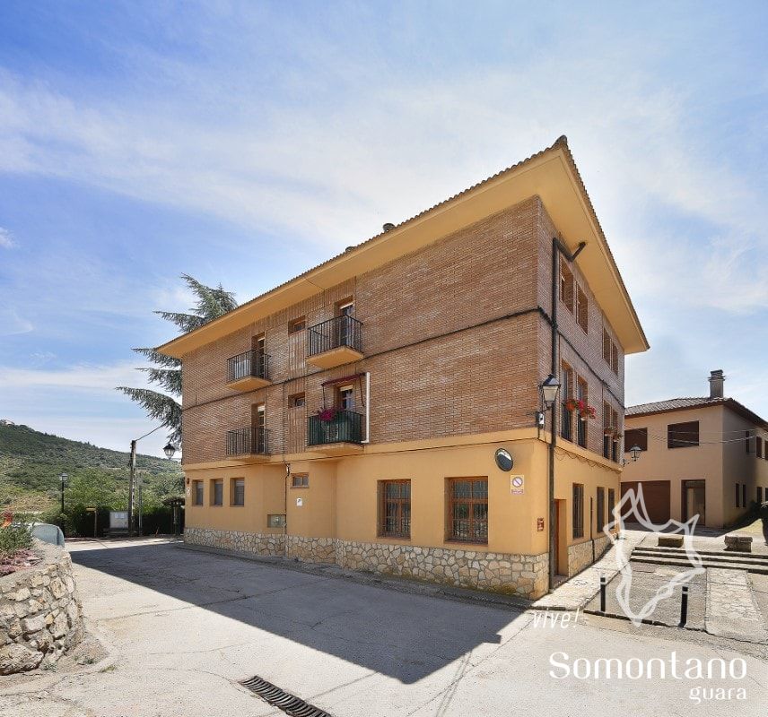 Es un edificio de tres plantas de construcción moderna situado en lo que era la escuela del pueblo. Es un edificio independiente y disfruta de sol durante todo el día. Este hecho sumado a que todas sus estancias dan al exterior ayudan a crear un agradable ambiente en el que descansar, relajarse y poder disfrutar de las vistas de los montes de Naval. Sin necesidad de salir a la calle los más pequeños pueden salir a jugar al parque de El Montillo situado justo enfrente.