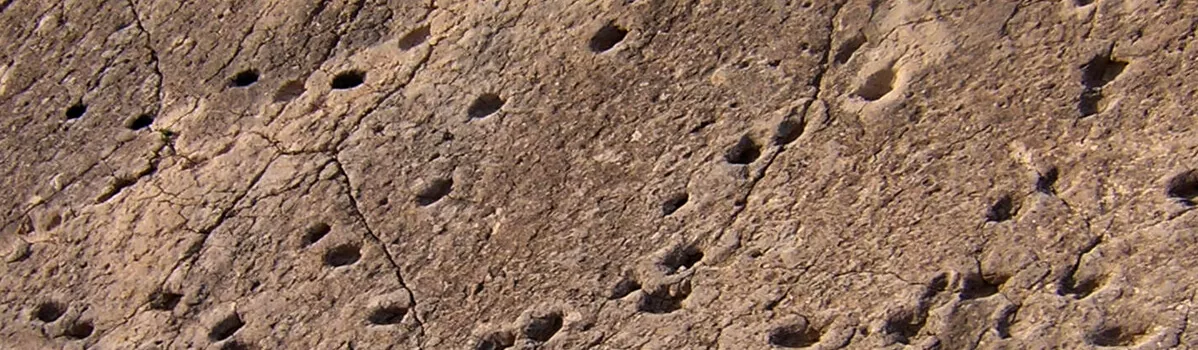 De sporen die zij achterlieten in de modder vulden zich met verdorde bladeren en bleven zo beschermd tegen erosie.
