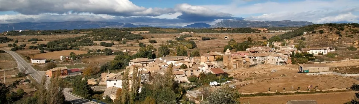 De gemeente Lascellas-Ponzano verwelkomt de bezoeker die Somontano binnenkomt na de grote open kloof van de Alcanadre.