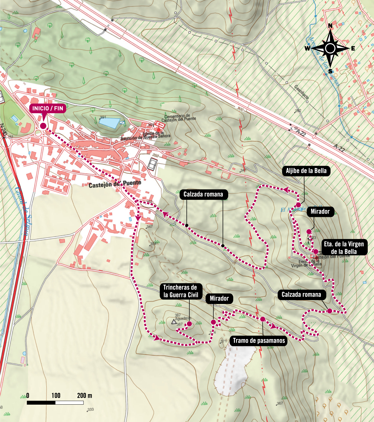 Esta ruta permite conocer el entorno de Castejón del Puente, ofreciendo panorámicas del paisaje y una experiencia de acercamiento al patrimonio y la memoria histórica.
